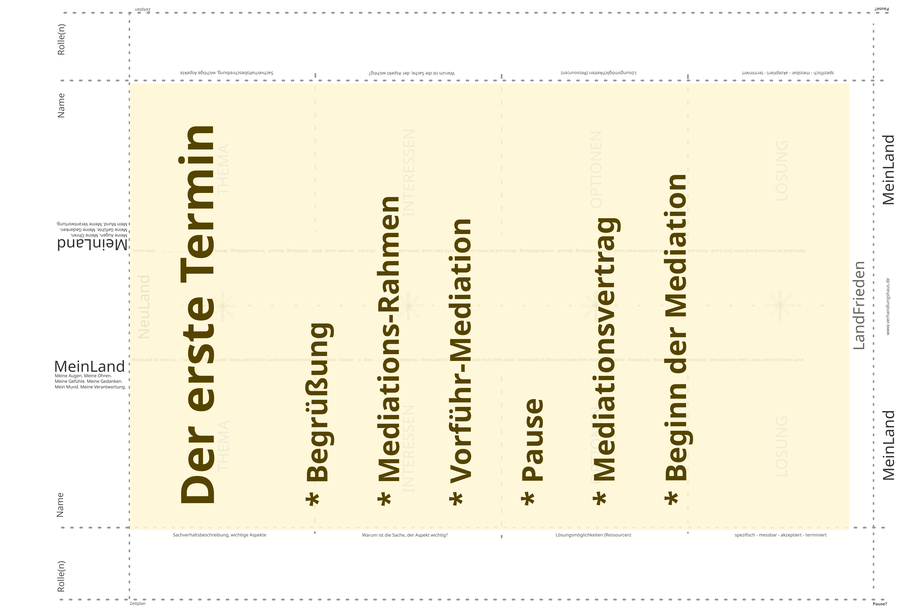 Mediation - "Vermittlung" - unterstützt Sie bei der Sachverhaltsaufklärung, bei der Klärung Ihrer Interessen, bei der Klärung der Lösungsmöglichkeiten und bei der Kontaktaufnahme und Verhandlung mit demjenigen, den Sie zur Problemlösung brauchen - dies mit in Jahrhunderten erlernten und bewährten Friedenstechniken.